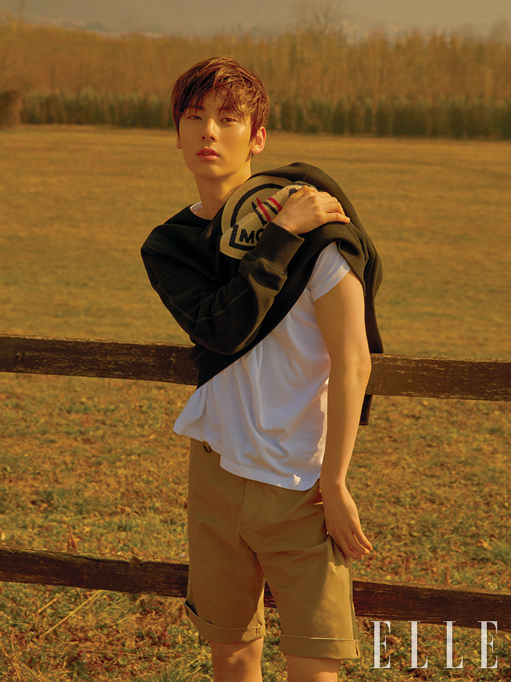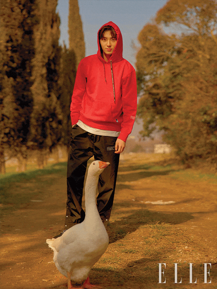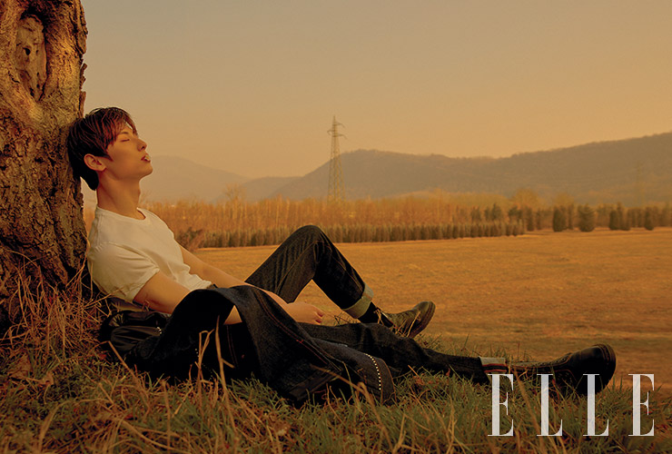 그리고 바로 <엘르>와의 촬영과 패션쇼 참석을 위해 밀란에 와 있어요. 감회가 어때요 사실 출국 전날에는 잠을 못 이룰 정도로 설레었어요. 이번이 두 번째 밀란 방문이었는데 그때와는 상황도 많이 달라졌고, 무엇보다 이렇게 멀리까지 와서 일할 수 있는 기회가 주어졌다는 사실이 정말 감사했어요. 데뷔 후 첫 단독 화보를 촬영했어요. 불안한 마음은 없었나요 두려움보다 긴장감이 더 컸던 것 같아요. 그래도 제일 컸던 마음은 설렘이었어요. 현장에 계시는 모든 분이 저를 위해 열심히 일해 주시고, 그분들의 진심이 느껴졌거든요. 그동안 포기하지 않고 열심히 해온 결과라는 생각이 들어서 스스로 조금 칭찬해 주고 싶은 마음도 있었어요.