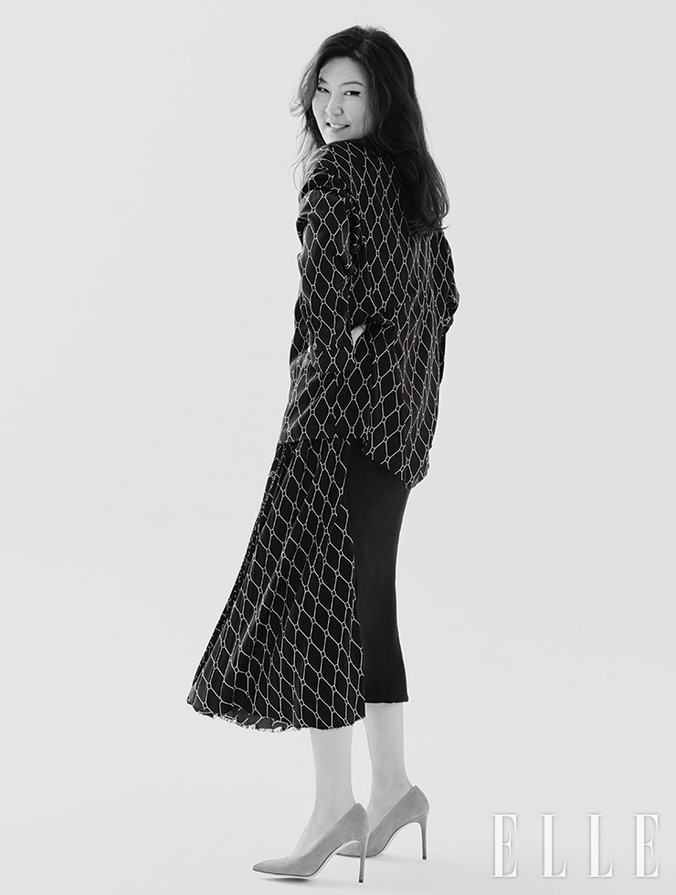 블라우스와 스커트는 Haider Ackermann by 10 Corso Como Seoul. 슈즈는 Stuart Weitzman.