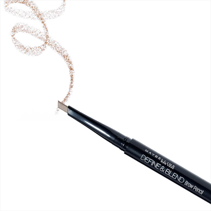 깎을 필요 없는 납작한 모양의 디파인 & 블렌드 브로우 펜슬, 라이트 브라운, 1만4천원, Maybelline New York.