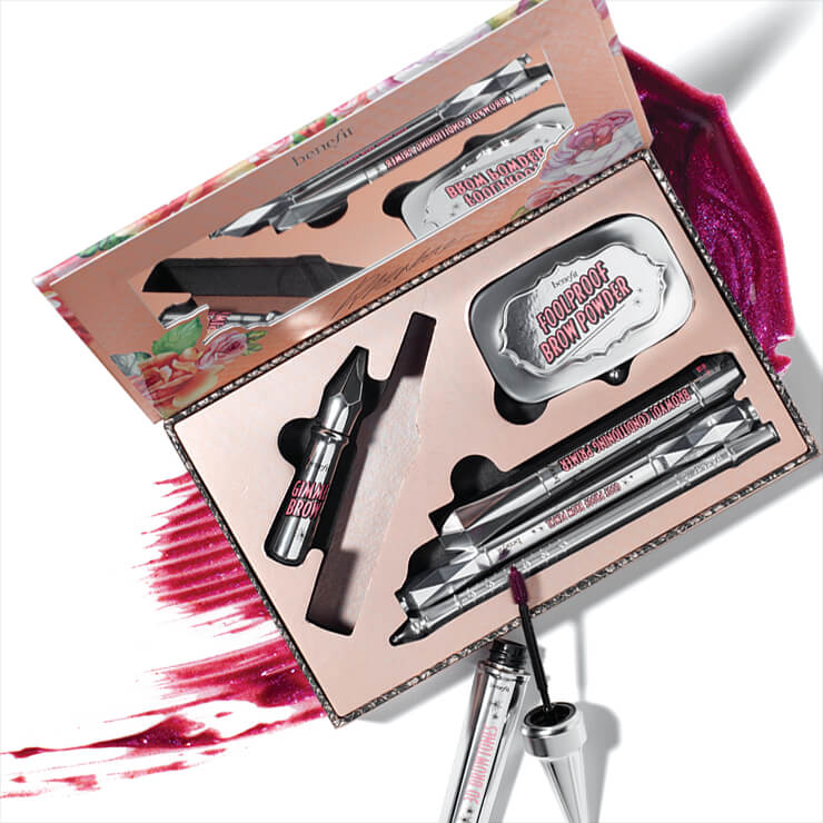 마젠타 컬러의 아이브로 마스카라, 브로 파우더 등 여섯 가지 도구가 담긴 베네피트× 이사배 브로우 팔레트, 8만3천원대, Benefit.
