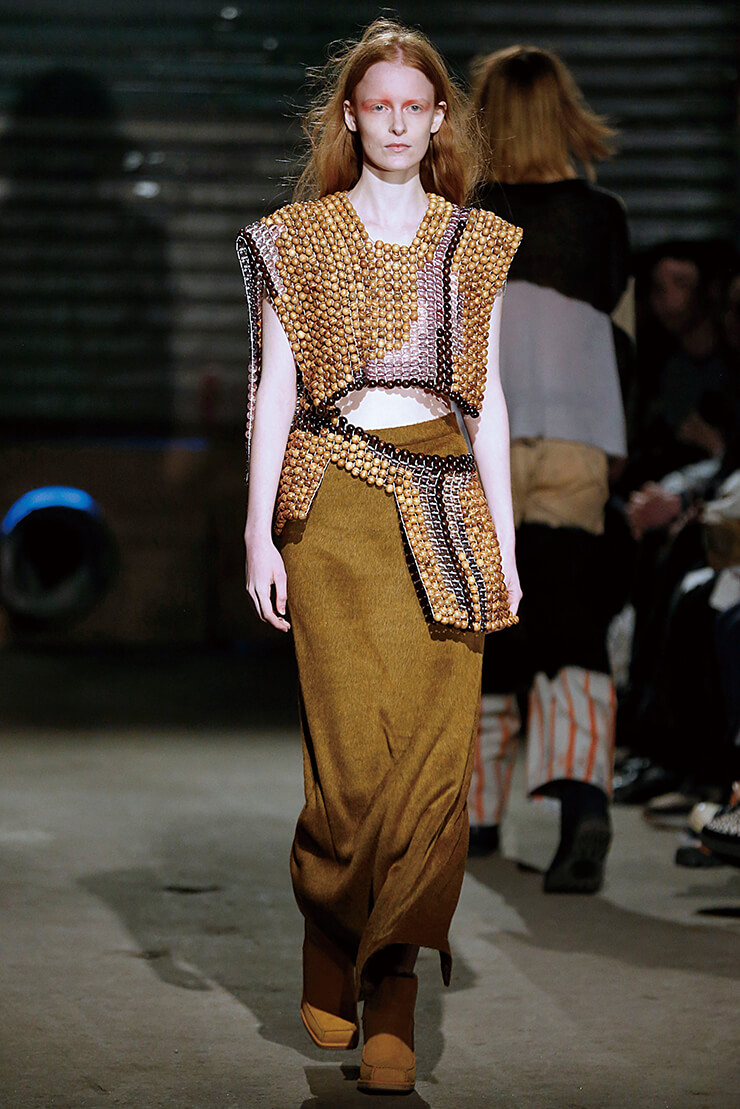 2019 F/W 컨셉트는 무엇인가 컬렉션을 기획할 때 확고한 컨셉트를 가지고 만들지 않는다. 컬렉션을 전개하기 위한 여러 출발점이 있고 그것들이 한데 모여 쇼가 탄생한다. 다만 공예 과정을 정제하고 이를 옷으로 능숙하게 표현하는 것은 매우 중요한 부분이다. 그래서 텍스타일이 강조된 니트나 자카르, 데님 등 다양한 직물을 활용한 룩을 보여준다. 시즌을 거쳐 텍스타일에 대한 방향성이 점점 초점을 맞춰가고 있다.