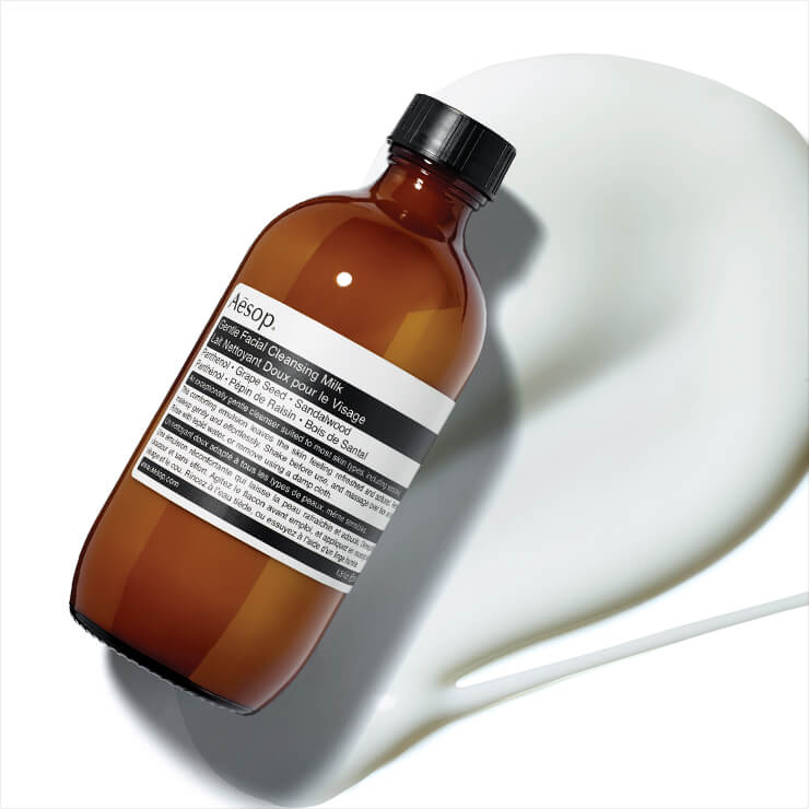 화장 솜에 토너를 적셔서 닦아내고, 아침엔 가벼운 로션만, 저녁에는 항산화 기능의 세럼과 크림을 바르는 걸로 끝내요. 뷰티 에디터치고 꽤 단출하죠 스킨케어 루틴을 설명할 때 ‘세안은 어떻게 한다’는 얘기가 쏙 빠져 있는 게 흥미롭네요. 미처 생각조차 못했죠? 사람들에게 같은 질문을 던졌을 때 십중팔구 비슷해요. 이솝은 피부 타입과 주변 환경에 맞는 클렌징 제품을 선택하는 것이 건강한 피부를 유지하는 데 핵심이라고 믿습니다. 클렌징을 잘해야 과잉 분비된 피지, 피부 표면에 쌓인 노폐물과 잔여 메이크업을 지우고, 수분과 영양 공급을 원활히 할 수 있으니까요. 클렌저의 점성과 질감은 제품 선택을 좌우하는 중요한 요소예요. 건조하고 민감한 피부를 지닌 고객의 니즈를 충족시키기 위해 부드럽고 효과적인 밀크 제형을 출시하게 된 거죠. 식물성 성분과 과학적으로 효과가 입증된 재료의 엄선과 정밀한 배합을 통해, 고객이 정말로 필요로 하는 것을 충족시키자는 이솝의 핵심 철학이 바로 젠틀 페이셜 클렌징 밀크 한 병에 담겨 있습니다.