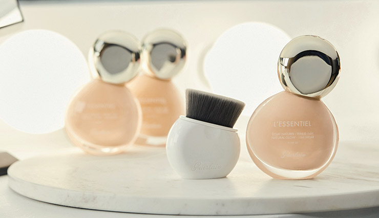 촘촘한 모가 결 자국 없이 고르고 섬세한 피부를 연출해 주는 르썽씨엘 브러쉬, 7만7천원. 97% 자연 유래 성분으로 16시간 동안 광채가 유지된다. 민감성 피부 테스트를 완료한 르썽씨엘 파운데이션 SPF 20, 00N, 8만7천원, 모두 Guerlain.
