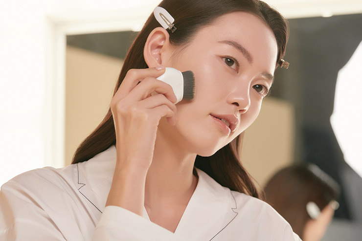 뉴트럴 톤 피부의 소유자, 모델 라지원이 최적의 베이스 메이크업 컬러를 찾기 위해 겔랑 르썽씨엘 파운데이션을 골랐다. 자외선과 뜨거운 조명 등 유해 환경에 쉽게 반응하는 예민한 피부이기에 97% 자연 유래 성분으로 만든 내추럴 포뮬러의 파운데이션을 선택한 것. 쿨(C), 웜(W), 뉴트럴(N)로 구분된 10가지 컬러 중 4가지 뉴트럴 컬러를 테스트한 결과는 가장 밝은 00N. 화보 촬영 내내 자연스러운 윤기를 부여, 피부를 편안하게 만들어주었으며 수정 화장으로 몇 차례 파운데이션을 덧발랐음에도 답답함 없이 커버됐다.