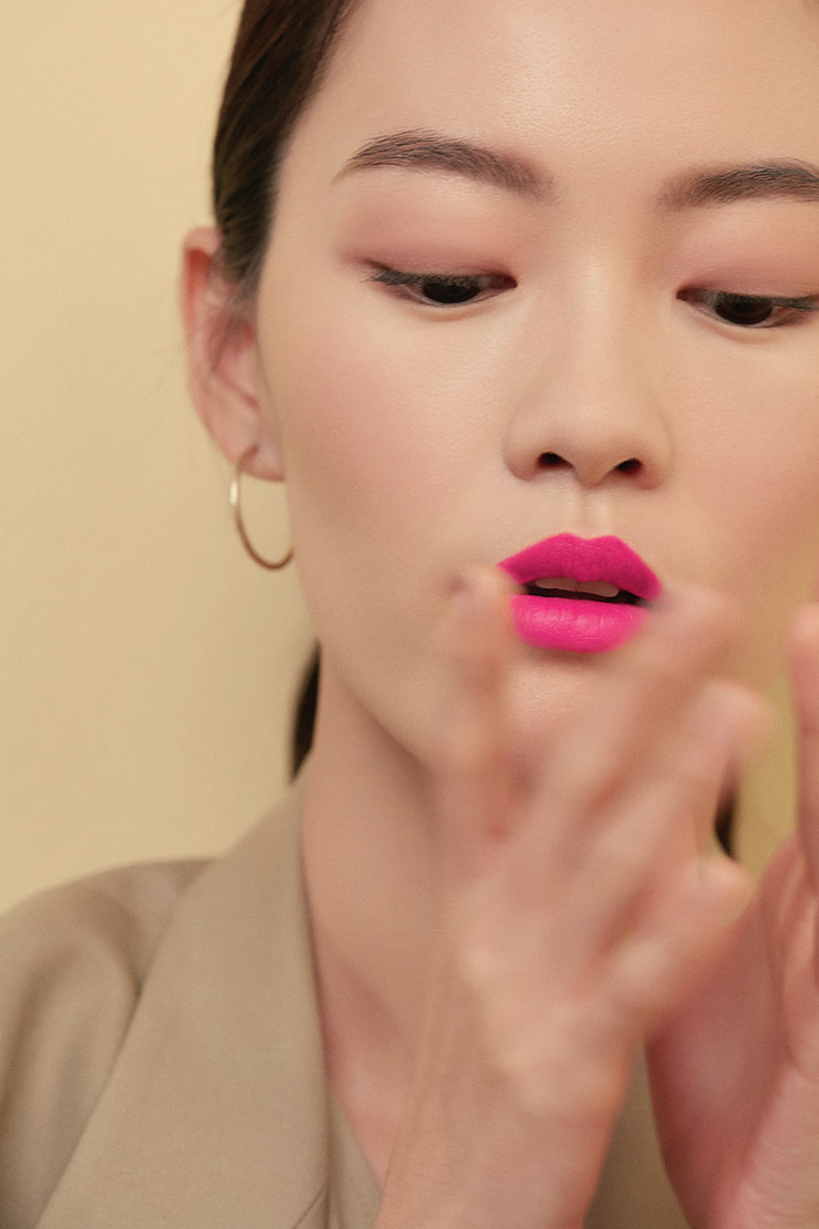이제는 피부에 ‘착’ 붙는 색조를 찾을 차례. 이미 뉴트럴 톤 피부에 맞는 완벽한 파운데이션을 찾았기에 쿨 톤, 웜 톤, 뉴트럴 톤의 색조 또한 적당히 어울릴 것이다. 그렇다고 아무거나 바를 수는 없지! 봄의 대명사, 핑크를 예로 들어볼까? 뉴트럴 피부를 화사하게 밝히고 싶다면 채도가 높은 핫 핑크를, 차분해 보이고 싶다면 채도가 낮은 베이지 핑크가 현명한 선택. 제형 역시 한몫하니 전자의 경우 매트하게, 후자인 경우 촉촉하게 발라 모던하게 연출하자.