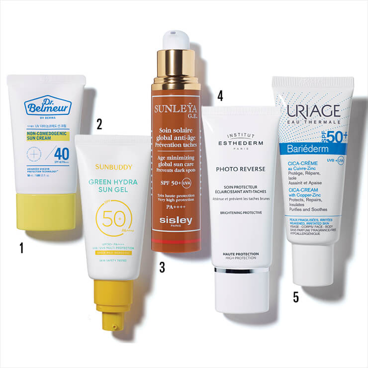 1 트러블, 고민고민하지 마 여드름을 유발하지 않는 논코메도제닉 테스트를 완료했으며, 알레르기를 유발할 수 있는 26가지 향료도 배제했다. UV 더마 논코메도 선크림 SPF 40/PA+++, 1만8천원, Dr. Belmeur.