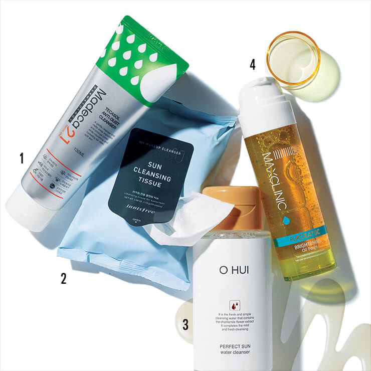 3 화장 솜에 묻혀 슥삭! 자외선차단제와 피부 잔여물을 말끔히 지워주는 순하고 촉촉한 데이쉴드 퍼펙트 선 워터 클렌저, 2만8천원, O Hui.