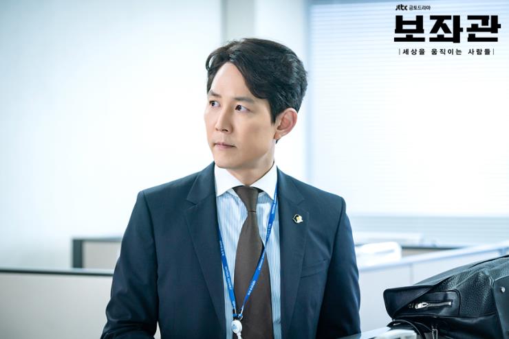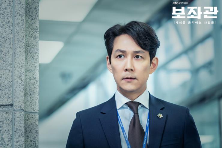 JTBC의 새로운 드라마 ‘보좌관’으로 오랜만에 브라운관으로 돌아온 이정재. 야망을 향해 질주하는 캐릭터답게 깔끔하게 넘긴 헤어 스타일을 주로 선보인다. 이마를 시원하게 드러낸 포마드 헤어로 강단 있는 캐릭터의 특징을 잘 보여준다. 일반인이 따라 하기에는 조금 어려운 헤어 스타일. 이마 라인이 예쁘지 않으면 얼굴의 단점을 극명하게 드러내는 스타일이다. 특히 M자 탈모를 겪고 있거나 이마가 좁아 스타일 도전이 고민된다면 주목!