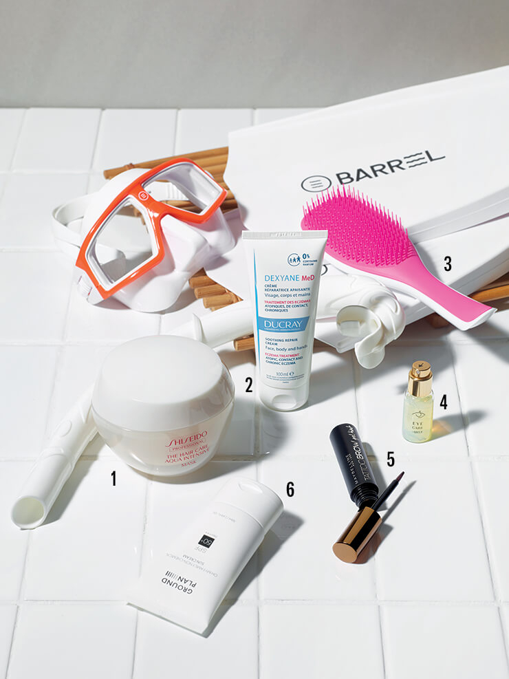 1 주 1~2회 사용하는 집중 관리 헤어 팩이지만 소금물과 자외선에 자극받는 다이빙 투어를 떠나면 컨디셔너를 쓰듯 매일 사용한다. 무겁지 않은 고영양 마스크로 머리카락이 처지지 않는 더 헤어 케어 아쿠아 인텐시브 마스크, 5만6천원대, Shiseido Professional.
