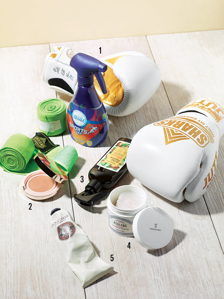 5 아무래도 복싱을 맨발로 하다 보니 발바닥 앞쪽에 자꾸 굳은살이 박히더라. 샤워 직후 발바닥에 빼놓지 않고 발라주는 보습제는 시어 인텐시브 풋 밤, 4만2천원, L’Occitane.