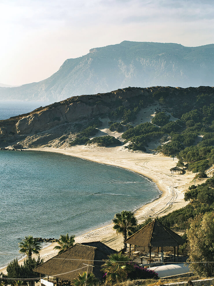 지중해 동쪽, 에게 해의 한 섬에 대한 얘기를 들었다. 사람의 손길이 닿지 않은 평온한 풍경과 눈부시게 반짝이는 바다, 발가락 사이로 흩어지는 고운 모래들. 이 평온한 헌사는 모두 비밀에 가려진 그리스의 섬, 코스(Kos)를 위한 것이다. 코스 섬은 불규칙적인 삶에 지친 마음을 위로하고 홀로 조용한 시간을 보내고 싶은 이들을 위한 곳이다. 허니무너들로 북적이는 산토리니나 환락의 섬으로 꼽히는 미코노스, 영화 <맘마미아> 촬영지로 관광객들이 몰려드는 스키아토스 섬이 아닌, 낯선 이름을 찾은 이유다. 아테네에서 비행기로 한 시간 거리인 코스 섬은 12개의 큰 섬과 150개의 작은 섬이 점점이 박혀 있는 도데카네스 제도에서도 동쪽 끝자락, 그리스 본토가 아닌 터키를 이웃으로 두고 있다. 비행기 안에서 섬 풍경이 얼핏 내려다보이기 시작하자 설레는 마음과 함께 심호흡을 가다듬었다. 숙소로 향하는 길엔 머릿속에 그렸던 풍경과 함께 섬이 품고 있는 예상치 못한 대조적인 매력과 마주할 준비를 해야 했으니까. 고대 유적지의 허물어진 기둥과 지역 주민이 일광욕을 즐기는 풍경이 어우러지고, 화려하지는 않지만 로컬 문화에 대한 강한 자부심이 섬 곳곳에서 느껴졌다.