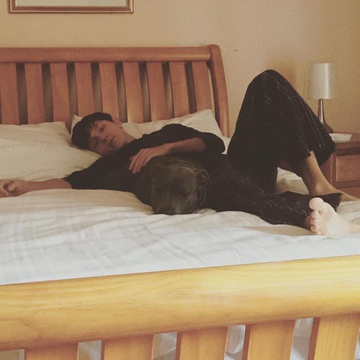 테사와 함께 누워있는 톰 홀랜드. 피곤한 듯 누워있는 모습에 절로 보호 본능을 일으킨다