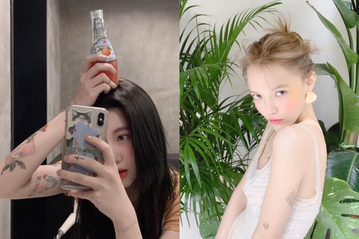 귀여운 미니 타투부터 컬러풀한 타투로 시선 강탈하는 현아의 타투. 살짝살짝 보이는 곳부터 등, 손목 손가락 등 다양한 위치에 자리 잡은 타투들. 어느 부위에 받을지 고민 중 이라면 현아의 타투 위치를 참고하는 것도 좋은 방법!