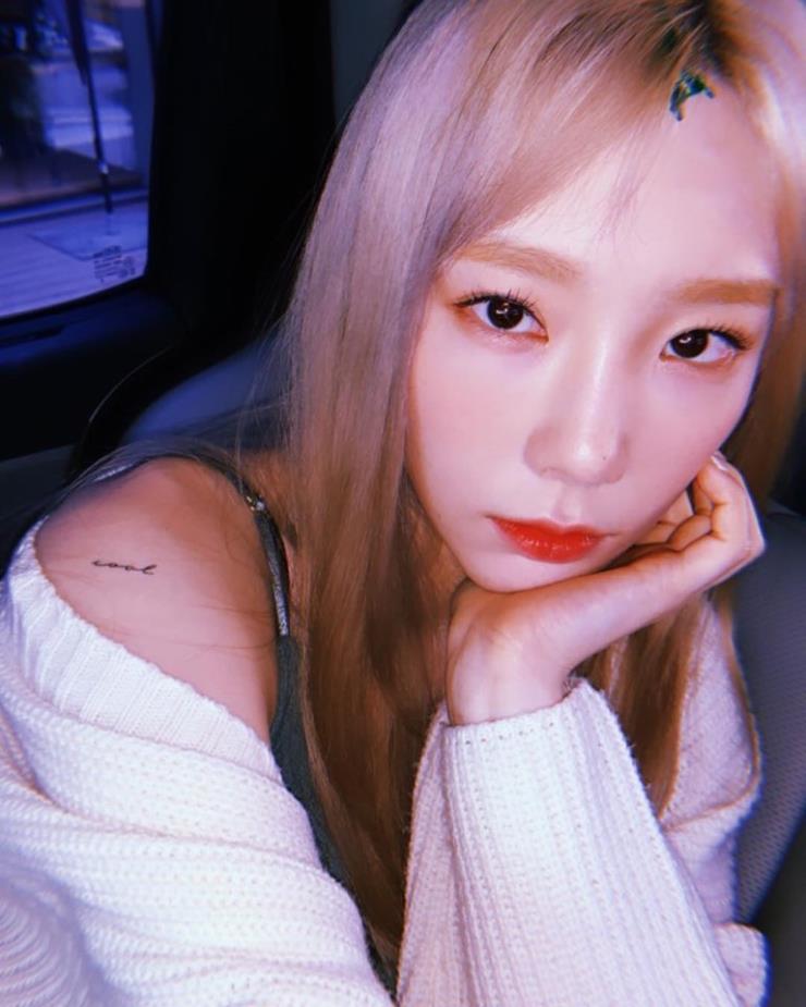태연의 반짝반짝 야광 ‘UV 타투’. 평소에는 보이지 않고 BLB(Black Light Blue) 조명 아래에서만 빛이 난다.