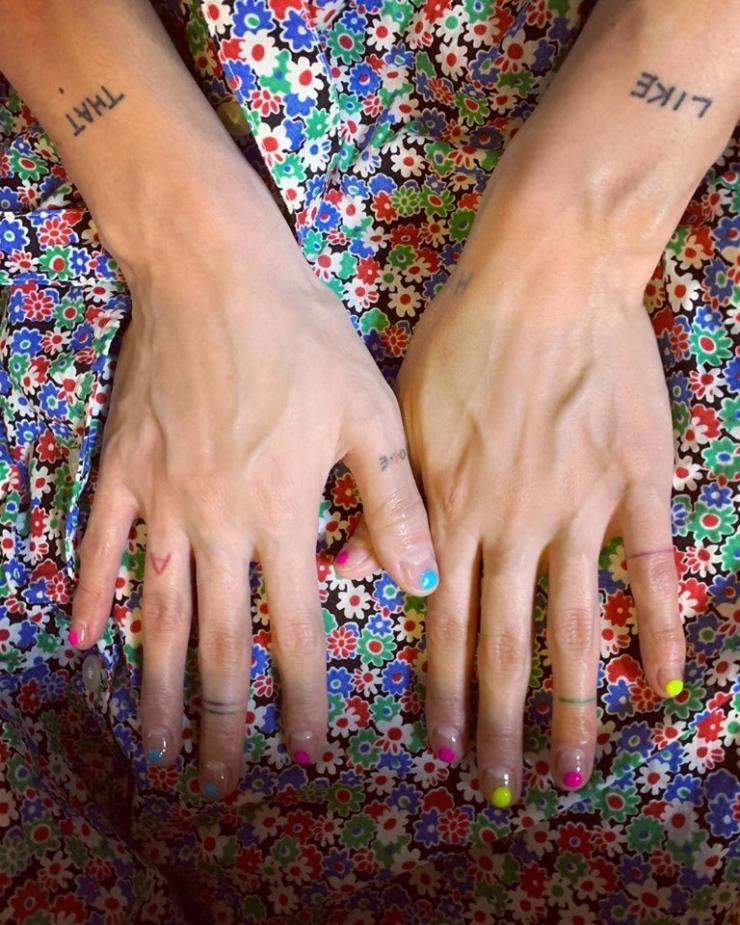 ‘헤이즈 타투’로 유명한 헤이즈의 손날 타투. 헤이즈로 활동하면서 후회하지 않고 부끄럽지 않게 살자고 다짐했다고. 레터링을 할 계획이라면 잘 보이면서도 부담스럽지 않은 손날에 하는 것도 포인트가 될 수 있다.