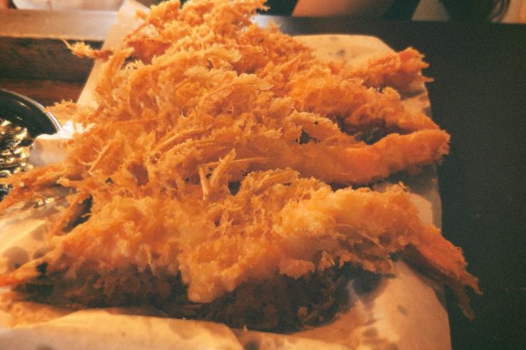 “네, 저희 지금 튀김은 다 떨어져서 왕새우 튀김만 가능하세요.”