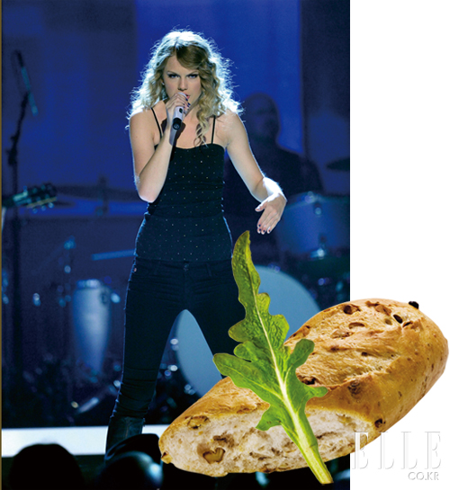 테일러 스위프트는 한때 생식 다이어트를 했었다. 가공되지 않은 채소와 유기농으로 재배한 곡물을 위주로 한 식단이 바로 그것. 채소의 경우 75%는 조리되지 않은 날것을 먹었을 정도로 그녀는 건강을 챙기는 오가닉 푸드 마니아다. “요즘은 달리기에 푹 빠져 있어요. 지구력과 체력을 기르는데 이만한 운동이 없거든요. 단순히 멋진 몸매를 위해서라기보단 콘서트를 통해 멋진 무대를 보여주고 싶기 때문이에요.” 밖에 나가 조깅할 시간이 없을 땐 투어 버스 안의 러닝머신으로 대신한다. 러닝머신은 공연을 앞두고 신경이 예민해진 그녀의 정신을 안정시키는 데 도움을 주기 때문이다. “정신없이 달리다 보면 복잡했던 머릿속이 정리되는 느낌이 들거든요.” |