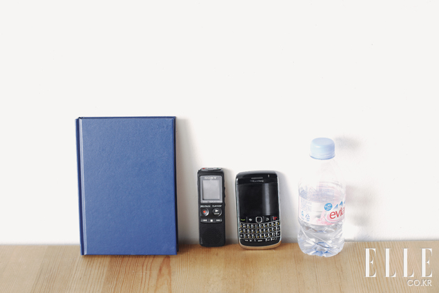 인터뷰 때 꼭 챙겨가는 물건은? 펜과 노트, 생수. 녹음기를 쓰지 않기 때문에 펜과 노트가 생명이다. 생수는 집중력을 유지하기 위해 필요하고, 향수는 꼭 뿌리는 편이다.