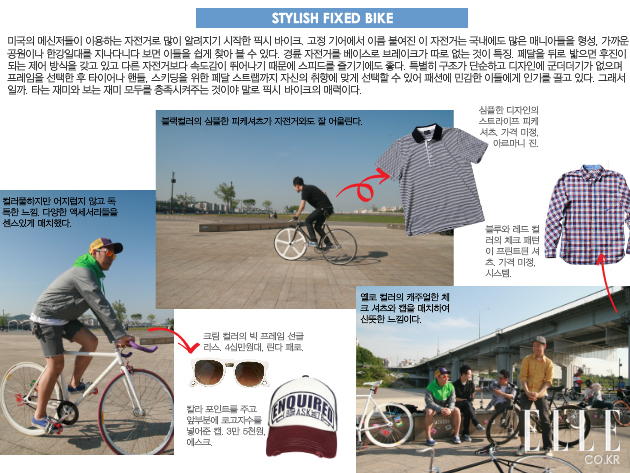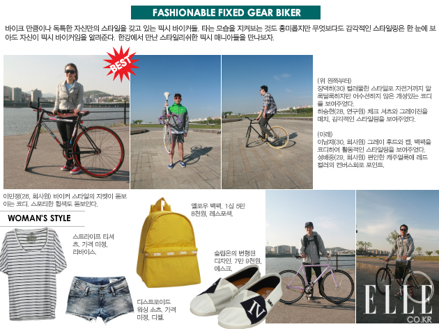 고정기어의 픽시 바이크. 부품 하나하나 원하는 데로 바꾸어 자신만의 것으로 만들 수 있는 이 자전거는 그 개성만큼이나 타는 사람들의 스타일도 독특하다. 스타일리시한 자전거와 더욱 스타일리시한 주인들이 존재하는 픽시 바이크 세상. 이제는 하나의 패션 아이템이 되어 버린 픽시 바이크는 자신을 표현하는 중요한 수단이 되었다.