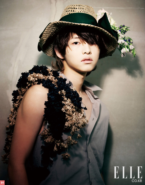“나 아사무사한 것 좋아해요.” 성글게 짠 밀짚모자에 꽃을 잔뜩 꽂은 채 속을 알 듯 모를 듯한 표정을 짓던 남자가 말한다. 건조하면서도 싱싱한 음성이다. 지금 스튜디오에 있는 이 남자는 송중기다. 영화 <쌍화점>에서 조인성의 호위무사로, 드라마 <트리플>의 쇼트트랙 국가대표 선수로 우리에게 얼굴을 알렸다. 최근엔 드라마 <산부인과>에서 레지던트로 출연했다. 하지만 그는 어떤 작품, 어떤 캐릭터보다 해사한 얼굴로 먼저 기억된다. 따지고 보면 딱히 캐릭터와 겉돈 적도 없고 연기가 준수했음에도 불구하고 말이다. 이건 다 지나친 미모 때문이다. 미모는 송중기에 대한 오해를 만든다. ‘아무것도 몰라요’ 하는 표정으로 시키는 대로 척척, 야들야들 감기는 스무 살 언저리의 미소년일 거라고. 그래서 별것 아니란 표정으로 ‘아사무사’를 발음하는 송중기는 낯설다. 스튜디오에 성큼성큼 들어와 안면 있는 스태프들을 일일이 찾아 다니며 인사하는 송중기. 컨셉트를 보면서 “아, 오늘 좀 ‘언니’처럼 하면 되겠구나.” 하고 얘기하고 샌드위치를 큼직하게 베어먹는 송중기. 같은 소속사 조인성 담당 매니저가 들리자 “어차피 오늘 머리 내려서 눈도 잘 안 보이는데 ‘조인성 휴가 나와서 촬영하다’ 이렇게 기사 내도 되겠네!” 농담 치는 송중기. 촬영을 마친 후 녹차를 타더니 후후 불며 마시는 송중기. 하나를 물으면 망설임 없이, 하지만 거칠지 않고 정갈한 단어를 술술 풀어놓는 송중기. 이거 정말 하나도 생각지 못했던 송중기라 혼란스럽다고? 지난해 11월, 자선 캠페인 ‘쉐어 해피니스’ 촬영을 위해 그를 처음 만났을 때 <엘르>도 마찬가지였다. 하지만 그는 스물여섯, 스스로 생각하고 행동하고 성장하는 남자다. 우리는 어쩌면 자세 다시 잡고 바로 앉아 그를 처음부터 다시 알아가야 할지도 모른다. “생각은 있었어요, 연예인에 대해. 물론 구체적인 건 아니었고 그 나이에 으레 그렇듯 그냥 한번 해보고 싶다는 거였죠.” 하지만 스스로 표현하듯이 ‘지르는’ 성격의 송중기에겐 ‘그냥 한번’이 아니라 ‘업’이 됐다. 그의 첫 결과물은 영화 <쌍화점>이었다. 여기서 그는 연기와 촬영에 대해 알게 됐고, 배우 조인성과 임주환을 얻었다. 조인성은 사진 촬영도 연기도 가장 많이 참고하는 배우요, 좋아하는 형. 나이나 커리어 시작점이 비슷한 임주환과는 서로 대화하고 격려하고 공부하는 동지가 됐다. 그리고 또 하나. 이 영화를 통해 학생 송중기는 연기자 송중기가 됐다. 아름다운 남자들이 한 무더기로 출연한 <쌍화점>, 고만고만한 새 얼굴들 사이에서 송중기가 살아남아 대중이 인식하는 범주로 들어온 비결은 뭘까? 미모, 연기, 열정 등이 모두 해당되겠지만 자기 확신과 의지를 첫 손에 꼽아야 할 것 같다. “시작이 늦은 편이죠. 주변 반응이 미적지근했어요. 학교 잘 다니다 왜 그러냐, 그냥 한번 해보는 거냐 등등. 그런데 내 생각이 잡히니까 흔들릴 게 없더라고요.” 지난 11월에 만났을 때 “본인이 잘생긴 걸 아는지, 워낙 유명한 동네 스타 아니었는지”를 질문했다. 하도 줄기차게 물어대서 그랬는지 모르지만 어쨌든 그는 수긍했다. 이런 말을 덧붙이며 “자아도취에 빠지기도 했죠.” 그 연장선상에서 배우 일을 택한 건 아닐까? “배우라는 존재를 화려하게 생각하기도 했어요. 물론 실제로 화려하게 사는 이들도 있죠. 하지만 내 경우엔 데뷔해도 생활은 그냥 내 생활이더라고요. 학교 갈 때 버스도 타고 그래요. 내 중심을 가지고 가니까 기대나 예상과 달라 충격을 받거나 당혹스러움에 시달리고 그러지도 않았어요. 배우도 하나의 직업이잖아요. 그보다 가장 생각지 못했던 부분은 이거예요. 내가 작품을 많이 할 수 있을 줄 몰랐어요. 운 좋게 신인치고 단시간에 작품을 많이 했어요. 아니, 작품이 많다기보다 경험을 많이 쌓을 수 있었다는 말이 맞겠네요.” “사무실에서는 ‘안 하면 어떠냐’는 얘기도 있었죠. 하지만 죽이는 것도 해보고 싶었지만 살인당하는 느낌도 경험해 보고 싶었어요.” 엥? 무슨 소리냐고? <이태원 살인사건> 얘기다. 그는 잠깐 얼굴을 비추자마자 바로 죽는 피해자로 등장했다. 의외의 선택이긴 했다. 마침 ‘엄친아’ 바람도 있었겠다, 어디 하나 모난 곳 없이 호감으로 등장한 배우의 행보치고는. <산부인과>도 좀 ‘다른’ 선택이었다. 이번에도 송중기 스스로 하겠다고 결정한 작품이었고 결론적으로는 잘한 작품이 됐다. |