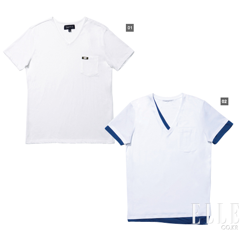 1 주머니가 달린 브이넥 화이트 티셔츠 1만8천원 페리엘리스 아메리카 2 블루 컬러 안감을 덧댄 브이넥 티셔츠 가겨미정 에르마노 설비노 |