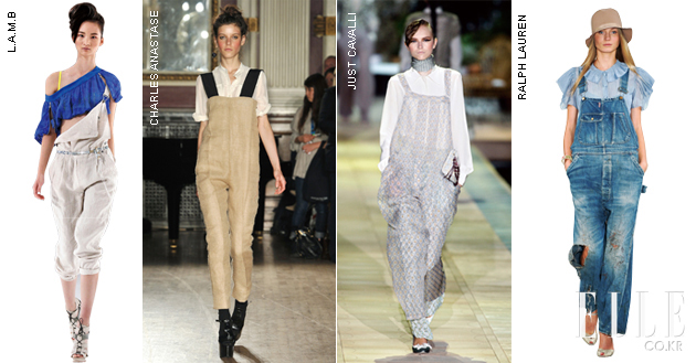 all overalls 2009 S/S 초미의 관심을 받은 아이템인 점프수트는 난해한 아이템으로 등장해 1년 만에 우리 옷장 속에 견고히 자리 잡았다. 점프수트가 만만해져서일까. 이번 시즌 차기 주자로 떠오른 아이템은 오버올(Overalls) 혹은 던가리(Dungarees)라고 불리는 일명 ‘멜빵 바지’다. 아동의 전유물로 여겨지던 오버올이 런웨이에 ‘성인용’으로 당당히 등장한 것. 점프수트와 오버올은 모두 작업복에서 유래됐지만 차이점이 있다. 셔츠 형태의 상의와 팬츠가 연결된 디자인이 점프수트라면, 오버올은 팬츠 위에 가슴 부분만 가리는 ‘앞판’과 멜빵 형태의 스트랩이 달린 디자인을 말하는 것. 이번 시즌 오버올을 런웨이로 불러들인 대표적인 디자이너는 랄프 로렌과 장 폴 고티에다. 랄프 로렌이 클래식한 디자인의 오버올을 소녀적인 무드로 재해석했다면, 장 폴 고티에는 80년대 식으로 과격하게 재해석된 오버올들을 선보인 것. 그런가하면 끌로에의 한나 맥기븐은 미니멀하게 재해석된 오버올로 모던한 무드를 보여줬다. 그렇다면 ‘향수 어린 아이템’인 오버올을 리얼웨이로 어떻게 소화하면 좋을까. 클래식한 디자인의 오버올이 탐난다면 랄프 로렌의 런웨이를 응용해볼 것. 데님 오버올의 밑단을 돌돌 말고 하늘하늘한 블라우스, 우드 웨지힐, 가죽 롱 백을 매치하는 식의 스타일링은 사랑스러운 컨트리 걸 무드를 보여줄 테니까. 또한 찰스 아나스타스의 런웨이처럼 미니멀한 오버올에 심플한 셔츠와 킬 힐을 매치하는 건 세련된 미니멀 룩을 완성시켜 줄 것이다. 또는 아기네스 딘의 파파라치 컷처럼 클래식한 오버올에 심플한 슬리브리스와 스니커즈 혹은 플랫 샌들을 매치해 가벼운 다운타운 룩을 연출하는 것 역시 현명한 스타일링 솔루션이 될 듯. 만약 긴 기장의 오버올이 부담스럽다면 쇼트롤(Shortalls, 짧은 기장의 오버올)을 택하는 방법도 있다. 좀 더 여성스럽고 사랑스러운 스타일링이 가능하기 때문. 지난여름 네이비 쇼트롤에 스트라이프 티셔츠, 캔버스 에스파드류 샌들을 매치한 알렉사 청의 파파라치 컷은 많은 네티즌들의 좋은 반응을 얻은 바 있다. 하지만 현실적으로 잊지 말아야 할 사실이 있다. 제아무리 트렌디한들, 오버올에서 ‘섹시함’ 혹은 ‘극도의 여성스러움’을 느낄 우리나라 남성 인구의 비율은 희박하다는 것. 그러니 점프수트에 이어 소개팅 혹은 아직은 데면데면한 데이트와 같은 TPO엔 ‘무리수 두는 아이템’임을 잊어선 안될 것이다. 이번 시즌 내내 쭉! |
