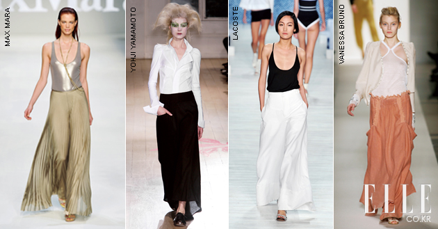 long and lean skirts 이번 시즌 혜성처럼 등장한 서머 패션 월드의 아이돌 스타는 롱 스커트다. 2005 S/S 시즌의 ‘히피 열풍’이 지난 후 한동안 기피 대상이었던 바로 그 ‘롱 스커트’. 자취를 감췄던 롱 스커트가 지난 시즌 미디 스커트의 바통을 이어받아 돌아왔다. 대표적인 런웨이는 하이더 아커만과 막스마라, 에르메스. 톤다운된 컬러와 최대한 생략된 디테일, 간결한 ‘롱 앤 린’ 실루엣이 이번 시즌의 특징이다. 이런 아이템은 심플한 슬리브리스 티셔츠만 매치해도 특유의 모던한 멋이 살아나 스타일링이 쉬운 점이 매력적이며, 초여름까지는 베스트를 레이어드하면 조금 더 스타일리시한 느낌을 낼 수 있다. 또 허리선부터 발끝까지 시선을 이어주기 때문에 몸이 길어 보이는 시각 효과를 주는 아이템이란 사실. 몸을 1:3 비율로 나누기 때문에 특히 다리가 길어 보인다. 롱 스커트의 귀환은 무엇보다 ‘동양적인 선’을 가진 체형의 이들에게 반가운 소식이 될 듯. 튼실한 하체를 가진 이들에게 더없이 현명한 솔루션이 될 보텀 아이템이기 때문이다. 하이더 아커만의 시그너처 아이템인 저지 소재의 롱 스커트가 이번 여름 가장 주목받는 디자인이지만 저지 소재의 타이트한 실루엣은 몸매를 있는 그대로 노출시킬 위험성이 커 두려움이 앞선다면 막스마라 런웨이처럼 심플한 톱에 엉덩이 부분까지 살짝 밀착되다가 아래로 갈수록 흐드러지는 플레어 실루엣의 롱 스커트를 매치해 보는 건 어떨까. 반면 살짝 퍼지는 롱 스커트에 프린지와 주얼 장식이 더해진 톱을 매치하는 바네사 브루노 런웨이 식의 스타일링은 업그레이드된 보헤미안 룩을 완성해줄 것이다. 슈즈는 드레스다운하고 싶다면 플랫 샌들이나 가벼운 스니커즈를, 드레스업하고 싶다면 청키한 샌들을 추천한다. 단, 얇은 스트랩 한두 줄로 이뤄진 가녀린 샌들보다 글래디에이터 류의 투박한 디자인이 시선을 연결해주기 때문에 더 안정감 있다는 사실을 잊지 말 것. 그러나 롱 스커트를 ‘서머’ 아이템으로 활용하고 싶다면 무엇보다 소재 선택에 주의를 기울여야 한다. 가장 활용도 높은 소재는 라코스떼 런웨이에 등장한 것과 같은 밝은 컬러의 얇은 코튼 소재. 몸에 밀착되지 않고, 통풍도 잘 되기 때문에 가장 부담 없다. 얇은 저지 소재의 경우엔 흡습성이 좋지만 몸에 밀착되므로 심 라인이 드러나지 않는 언더웨어를 선택하는 것이 안전하다는 사실을 기억할 것. 반면 시폰의 경우엔 ‘속치마’ 소재를 잘 살펴야 한다. 특히 조금이라도 땀이 나면 몸에 휘감기는 나일론이나 폴리에스테르 등의 합성섬유 소재의 속치마라면 고심해 보는 편이 좋을 것이다. 햇빛이 강렬한 핫 서머 시즌에 다리를 타고 흘러내리는 땀에 울고 싶지 않다면 말이다. |