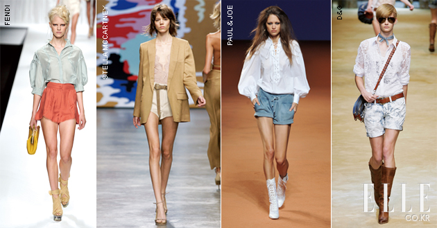 shorty shorts 빼놓을 수 없는 서머 아이템인 쇼츠는 시원하고 좋은 활동성으로 2009 S/S 시즌부터 사랑받고 있다. 디자이너들 역시 쇼츠의 매력을 간과할 수 없었는지 이번 시즌 프라다와 이브 생 로랑 등 내로라 하는 런웨이에 쇼츠가 빠짐없이 등장했다. 허나 이번 시즌엔 한층 짧아진 길이로 더 큰 자신감을 요구하는 것이 사실. 특히 언더웨어와 혼동될 만큼 짧은 V 커팅 쇼츠는 거리에 입고 나서기엔 온몸의 솜털이 곤두설 만큼 부담스러운 아이템임을 부정할 수 없을 터. 그러나 극단적인 아이템을 제외하고도 무궁무진한 디자인의 쇼츠가 등장한 만큼 훤히 드러내는 다리가 두려웠던 이들이라도 이번 시즌에는 좀 과감해져도 좋겠다. 길이 때문에 쇼츠를 멀리하는 이들이 많지만, 근 3년 내내 쇼츠를 입어온 에디터의 경우와 주변 관찰 결과를 고려해볼 때 쇼츠는 의외로 스키니 팬츠나 미니 스커트보다 체형 결점 커버 효과가 좋은 아이템이다. 우선 허벅지 중간에서 끝나는 미니스커트보다 다리가 훨씬 길어 보이며, 엉덩이 라인을 적나라하게 보여주는 스키니 팬츠보다 둔부 결점도 확실히 커버되기 때문. 또 킬힐과 매치해 다리를 드러내면 시선이 끊기지 않기 때문에 휘거나, 굵거나, 짧은 다리 라인 커버에 훨씬 효과적이다. 이번 시즌의 쇼츠 트렌드는 단연 데님 소재 롤업 디자인이 0순위다. 디스퀘어드2와 D&G 런웨이에 등장한 롤업 데님 쇼츠는 평범한 단색 티셔츠만 매치해도 경쾌한 룩이 완성되는 아이템. 여기에 삭스와 샌들을 더하면 가장 트렌디하게 이번 시즌 데님 쇼츠를 즐길 수 있다. 그 외에 발맹과 에린 와슨의 모노 톤 쇼츠, 폴 앤 조의 스웨트 소재 쇼츠 역시 스트리트 무드를 즐기는 이들에게 활용도 높은 아이템이 될 듯. 반면 질 샌더와 펜디, 스텔라 맥카트니 런웨이의 정제된 디자인의 쇼츠들은 쇼츠가 모던하고 로맨틱한 룩도 얼마든지 연출 가능함을 보여준다. 콤플렉스가 있는 체형에 추천하자면, 쇼츠는 단연 작고 왜소한 체형에 잘 어울리는 아이템이다. 이는 160cm 미만의 신장을 가진 레이첼 빌슨과 올슨 자매 등의 패셔니스타들이 쇼츠를 자주 입는 것만 봐도 자명한 사실. 특히 하이웨이스트 쇼츠로 허리선을 높여 상의와 하의 비율을 1:1로 연출하고 10cm 이상의 킬힐을 매치하면 훨씬 몸이 길어 보이는 효과를 낼 수 있다. 반면 키가 크고 살집이 있는 체형이라면 로웨이스트 디자인의 살짝 낙낙한 데님 팬츠나 치노 팬츠를 선택해 중성적으로 심플하게 연출할 것. 에린 와슨 런웨이를 참고하면 멋스러운 스타일을 연출할 수 있을 것이다. 그러나 무엇보다 어떤 체형이든, 어떤 디자인의 쇼츠든, 쇼츠를 입을 땐 슈즈가 훤히 드러나기 때문에 선택에 심혈을 기울여야 한다. 앞코가 뾰족한 스틸레토 힐과 달그락거리는 슬리퍼 형태의 뮬은 단번에 당신을 90년대의 여자로 변신시킬 아이템이니 조심하시라! |