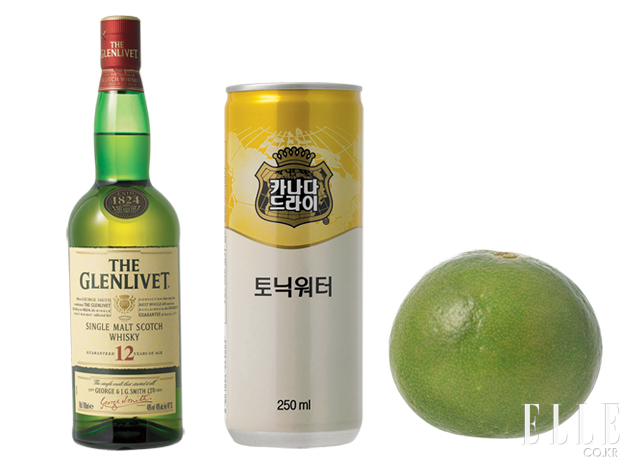 The Glenlivet 12+Tonic Water+Lime 더 글렌리벳 12년산. 황금빛 위스키가 담긴 짙은 초록색 보틀은 생기 넘치는 푸른 나뭇잎을, 마개를 따는 순간 사방으로 퍼지는 신선한 꽃향기는 여름 초원을 연상시킨다. 또한 첫 맛에서 느껴지는 새콤달콤한 파인애플을 비롯한 다양한 열대 과일의 감칠맛은 혀끝을 자극하고, 바닐라 향으로 이어지는 부드러운 마무리는 입 안 가득 긴 여운을 선사한다. 사실 더 글렌리벳 12년산의 맛과 향을 즐길 수 있는 가장 좋은 방법은 실온의 생수와 1:1 비율로 섞어 마시는 것이다. 하지만 좀더 청량한 느낌을 원한다면 얼음을 가득 채운 잔에 더 글렌리벳 12년산을 살짝 따라 언더록으로 즐기거나 생수 대신 차가운 토닉 워터를 섞어 즐기는 방법이 있다. 생강을 바나나, 산딸기와 함께 으깨 파인애플 주스와 슈가 시럽, 진저에일을 섞는 것도 색다른 방법. 가벼운 팁 하나 더! 더 글렌리벳 12년산은 훈제 연어와 함께했을 때 풍미가 깊어지는데, 위스키의 달콤한 과일 향이 훈제 연어의 담백한 맛과 절묘한 조화를 이룬다고.