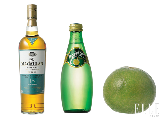 Macallan 15+Perrier+Lime 몰트 위스키의 매력은 무엇보다 특유의 풍미로 개성을 자랑한다는 것. 증류소마다 생산 연도마다 조금씩 다른 맛의 뉘앙스가 입을 즐겁게 하는 것이다. 작가 하루키는 스코틀랜드를 여행하며 별별 몰트 위스키를 산지에서 직접 즐긴 후 기록으로 남겼지만, 더구나 뱃사람들과 함께 해풍 맞으며 스트레이트로 들이켰지만, 바야흐로 뜨거운 열대야가 밤공기를 잠식하는 여름을 앞두고 위스키를 색다르게 즐기는 방법은 뭐니 뭐니 해도 위스키 칵테일 아닐까? 싱글 몰트 위스키 맥캘란 15년산은 차가운 탄산수와 함께라면 제격이다. 옅은 갈색빛을 띤 15년산 특유의 장미, 시나몬, 초콜릿, 오렌지, 건포도 등 향과 맛을 더욱 섬세하게 즐길 수 있기 때문. 더구나 풍부한 미네랄을 함유한 탄산수 페리에에 살짝 얹은 라임 조각은 더할 나위 없는 궁합을 자랑한다고. 다양한 향과 풍미, 시원한 에메랄드 컬러 보틀의 15년산과 초록병과 특유의 맛이 인상적인 페리에는 트렌드세터들에게 인기가 많다는 점도 닮았다.