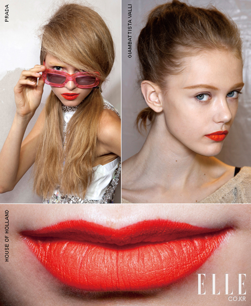 꽃피는 봄 자연스레 꽃분홍 컬러 립스틱에 손이 갔던 당신이라면, 이번 시즌엔 핑크에 대한 사랑을 잠시 접어두어야 할 것 같다. 지금 우리가 주목해야할 컬러는 바로 오렌지 핫 레드! 런웨이에서 프라다, 소니아 리키엘, 크리스챤 디올 등 수많은 디자이너들이 모델들의 입술을 밝은 채도의 경쾌하고 도회적인 오렌지 레드로 물들인 것. 레드 립 메이크업은 채도 뿐 아니라, 텍스처, 피부 톤 연출에 따라 전혀 다른 느낌의 분위기를 자아내니, 런웨이 모델들의 룩을 참고하자. 하우스 오브 홀랜드 쇼에서는 리치한 질감의 글래머러스한 오렌지 레드 립을 연출한 반면 엘레나 미로 쇼에서는 글로스로 마무리해 반짝이는 윤기를 더했다. 소니아 리키엘 쇼에서는 틴트를 발라 마치 본연의 입술 컬러인 듯 혈색 좋은 오렌지 레드 립을, 크리스챤 디올 쇼에서는 마지막에 파우더 브러시로 살짝 터치해 보송보송한 입술을 완성했다. 대부분의 여성들이 도전하기 어려워하는 오렌지 레드를 좀더 쉽게 접근하는 노하우는? “핫 오렌지와 레드 계열 립스틱을 믹스해서 발라주세요. 이러한 오렌지 레드 컬러를 연출할 때는 창백한 피부과 관건이죠. 이때 입술이 가장 포인트를 이루는 만큼 눈매를 제외한 다른 부위는 상대적으로 은은하게 처리해주어야 전체적인 메이크업이 조화를 이룹니다.” 고원혜 메이크업 아티스트의 설명이다. 우선 피부는 촉촉한 윤기를 주기 위해 크림 타입 베이스를 사용하고, 미세한 잡티까지 펜슬 타입 컨실러로 완벽하게 가려준다. 눈두덩에는 컬러를 배제한 채 질감만 살리는 정도로 마무리하고, 아이 라인은 아닌 펜슬로 점막을 꼼꼼히 메워주어 또렷한 눈매를 연출해준다. 뷰러로 속눈썹을 자연스럽게 컬링해주면 어려보이면서도 도도한 인상이 더해진다는 팁도 기억할 것. |