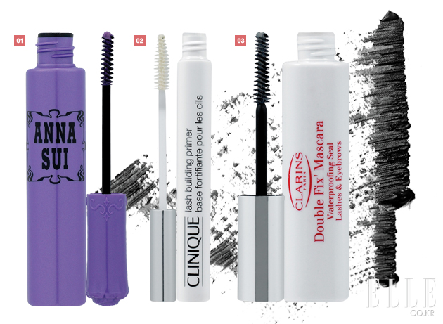1 컬링 효과 및 좀 더 정돈되고 팽팽한 속눈썹을 선사, 지속력을 높여주는 라스베리와 캐럽 나무 추출물 함유. 2만8천원. 6g. 안나수이 베이스 마스카라. 2 속눈썹이 짧고 직모인 여성에게 적합, 마스카라의 효과를 극대화 시켜줌. 2만2천원. 4.8g. 크리니크 래시 빌딩 프라이머. 3 울트라 화인 왁스, 헥토라이트 클레이 성분이 속눈썹을 코팅해 어떠한 환경에서도 마스카라를 완벽하게 유지시켜줌. 2만8천원. 7ml. 클라란스 더블 픽스 마스카라.