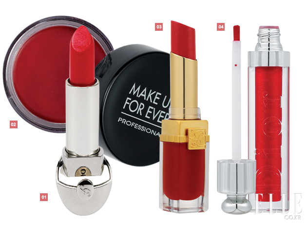1 세련된 색감과 발색, 뛰어난 보습력의 히알루론산 마이크로스피어 성분 함유. 5만6천원. 3.5g. 겔랑 루즈 G 겔랑 브릴리언트. 2 뛰어난 보습력의 시어버터 성분 함유, 보이는 그대로 발색되는 생생한 색감. 2만7천원. 3.7g. 메이크업 포에버 프렌치 립스. 3 3D 옵틱 펄 테크놀로지가 입술에 풍부한 볼륨감 선사, 촉촉하고 크리미한 텍스처. 3만4천원. 2.5g. 에스티 로더 퓨어 칼라 글로스 스틱. 4 고급스럽고 세련된 색감, 글래머러스한 입술로 연출. 3만6천원. 6.3ml. 크리스챤 디올 디올 어딕트 울트라 글로스. |