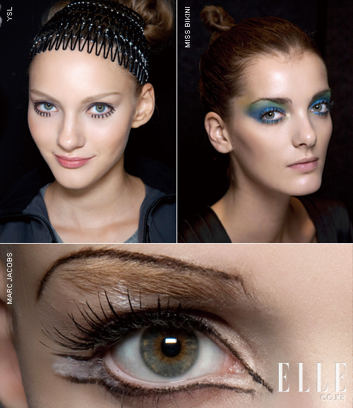 패션의 화룡점정이 하이힐이라면, 메이크업에선 마스카라가 그렇다. 아찔한 속눈썹은 자신감마저 생기게 만드는 무엇. 이번 시즌 한층 다양해진 속눈썹 스타일을 눈여겨 보자. 고작 3cm 미만의 아이 라인에 존재하는 1cm 미만 길이의 속눈썹에 ‘스타일이 있으면 얼마나 있겠어?’ 라고 생각할 수도 있다. 하지만 길이와 볼륨의 정도, 컬의 방향, 페이크 래쉬의 활용 여부 등에 따라 속눈썹은 끝도 없이 다양하게 연출된다는 사실. 특히 이번 시즌의 런웨이에서 선보인 현란한 래쉬 테크닉은 리얼웨이에서의 속눈썹 연출을 위한 좋은 본보기가 되어준다. 크리스챤 디올 쇼의 모델들은 속눈썹을 뿌리부터 수직으로 말아올려 웨이브를 주었으며, 칼 라거펠트의 뮤즈들은 속눈썹과 언더 속눈썹 한올 한올에 볼륨을 주어 정교한 눈매를 완성했고, YSL 쇼에서는 짧은 부분 속눈썹을 언더 라인에 붙여 헤어 밴드와 매치를 이룸으로써 아티스틱한 느낌을 자아냈다. 드라마틱한 속눈썹을 연출하고 싶다면 마스카라 베이스를 적극 활용하면 된다. “베이스로 속눈썹을 한올 한올 코팅한 후 마스카라를 발라주면 두 배 이상의 효과를 얻을 수 있죠.” 이현아 메이크업 아티스트의 팁이다. 한편 21세기에 걸맞는 혁신적인 진동 마스카라나 속눈썹 뿌리에 영양을 주는 에센스 마스카라도 있으니 첨단 테크놀로지를 최대한 누려보는 건 어떨까. |
