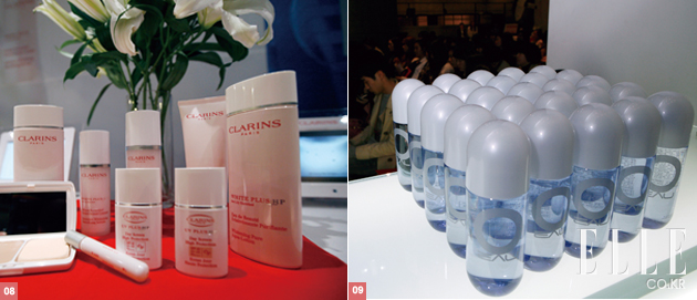 8 클라란스의 신제품 ‘화이트 플러스 HP 라인’ 제품들. 9 지니 에디터들을 위해 준비한 파리바게트 프리미엄 생수 ‘오(EAU)’.