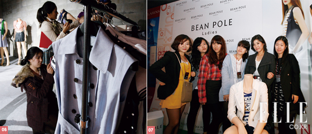 6 빈폴 레이디스의 제품을 꼼꼼하게 보고 있는 지니 에디터들. 7 강의실 한쪽에 마련된 톰앤톰스의 커피.