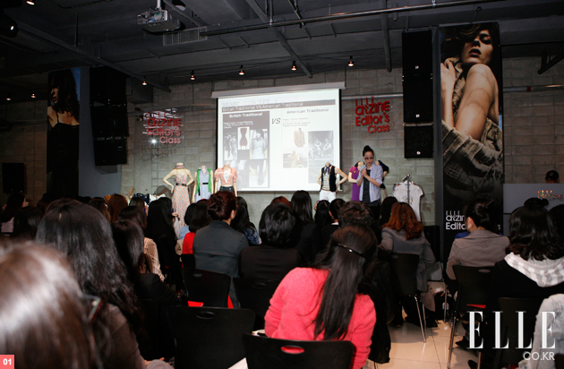 ‘기상관측 사상 가장 쌀쌀한 4월 하순’ ‘100년 만의 4월 추위’라는 기록을 세운 지난 4월 28일, 삼성동 JBK 타워에서 엘르 엣진(ELLE atZINE)의 에디터 클래스가 열렸다. 엣진의 지니 에디터 3기들의 콘텐츠 제작 능력 향상을 위해 패션계 최전선에서 활동하고 있는 화려한 강사진으로 구성된 이번 에디터 클래스는 지난 12월 23일에 이어 두 번째 시간이었다. 에디터 클래스가 예정된 시간은 오후 3시, 요란하고 심술궂은 날씨에도 20~30분 전부터 자리가 채워지기 시작했다. 장내에 설치된 대형 스크린, 흐트러짐 없이 일렬로 맞춰진 의자들과 흡사 클럽을 연상시키는 비트 강한 음악의 간극이 호기심을 자극했다.