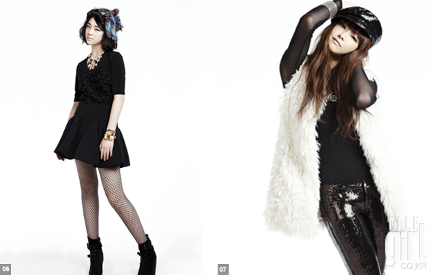 지금은 ‘걸 그룹 전성시대’. 팀을 이룬 소녀들의 싱그러운 미소와 섹시한 퍼포먼스에 대한민국 전체가 흠뻑 빠졌다. 때를 놓칠세라 연이어 등장한 신상 걸 그룹 중에서 f(x)는 데뷔 전부터 각별한 주목을 받은 스타급 신인이다. SM 엔터테인먼트가 세계 무대를 겨냥해 최강 멤버들로 꾸린 엘리트 그룹이라는 소문이 기대감을 증폭시켰고, 첫 싱글 ‘라차타’를 발표하자마자 음악 차트를 장식하며 성공적인 스타트를 한 것. 하지만 답을 알 수 없는 수학공식처럼, 평균연령 16.6세의 다섯 멤버들은 궁금증투성이다. 그리하여 오늘 <엘르걸>이 그 비밀을 캐기 위해 패션 화보를 가장한 관찰 카메라의 전원을 켰다. “안녕하세요, f(x)입니다!” 명랑한 인사와 함께 다섯 명의 멤버가 사이좋게 들어섰다. 화장기 없는 얼굴, 티셔츠와 청바지 차림의 앳된 소녀들이다. 스케줄에 쫓겨 꾸벅꾸벅 조는 아이돌을 보는 것만큼 안쓰러운 일도 없는 법. 다행히 추석 연휴 동안 충분한 휴식을 취한 멤버들은 모두 생기발랄하다. 메이크업을 하며 촬영 준비를 하는 동안 무대 위에서 봤던 한명 한명의 도드라진 매력이 차차 눈에 들어온다. 세련된 스타일, 자신만만한 표정으로 파워 있는 댄스를 선보이는 이들은 레이스 원피스를 입고 수줍은 미소를 짓는 인형 같은 걸 그룹과는 다르다. 그래서 준비한 오늘의 화보 컨셉트는 블랙 록 시크. 다섯 명 각각의 개성을 최대한 드러낼 수 있는 스타일링으로 개별 컷 촬영을 시작했다. 첫 번째 주인공은 리더인 빅토리아. 타이트한 블랙 팬츠와 화이트 퍼 베스트가 글래머러스한 그녀의 몸매를 부각시켜준다. 어릴 적부터 무용을 한 덕인지 카메라 앞에서 어려움 없이 유연하고 다양한 포즈를 선보이는 빅토리아. 중국인인 그녀는 아직 한국말이 서툴지만, 서툰 언변 속에서도 예의 바르고 싹싹한 성품이 그대로 묻어난다. 팀의 동생들은 물론 미용실 스태프들까지 빅토리아의 ‘애교 있는 한국 말투’를 흉내 내기 일쑤. “드라마를 보거나, 책을 보거나, 멤버들과 얘기하는 것 모두 제게는 한국어 공부예요.” 낯선 나라에서 혼자 지내는 것이 외롭지 않을까 걱정했더니, 열 살 때부터 학교 때문에 가족과 떨어져 생활해 익숙하다고 씩씩하게 답한다. 더욱이 고향인 중국 청도에서의 첫 해외 공연을 앞두고 있어, 하루하루 기대와 흥분이 커져간다. “팀의 리더이자 언니로서 책임감이 커요. 그래도 동생들이 잘 따라줘서 힘들진 않아요. 내 말을 진지하게 들어주는 모습이 너무 예쁘고 사랑스러워요.” 화이트 스커트를 펄럭이며 들어선 두 번째 멤버는 크리스탈이다. 하얀 얼굴과 긴 생머리를 지닌 ‘천생 소녀’인 줄 알았는데, 블랙 아이라인을 그리고 나니 전과 다른 카리스마가 느껴진다. “본래 리본이나 레이스가 달린 여성스러운 옷은 잘 안 입어요. 성격도 털털한 편이고요.” 별다른 포즈를 취하지 않아도 첫 컷부터 마지막 컷까지 사진 속의 그녀는 그림처럼 완벽하다. 언뜻 영드 ‘스킨스 2’의 주인공 카야 스코델라리오를 연상케 하는데, 실제로 그녀가 닮고 싶은 걸 아이콘으로 꼽는 스타이기도 하다. 이미 알려졌다시피 크리스탈은 선배 그룹인 소녀시대의 멤버 제시카의 동생. 데뷔하고 나서 서로 얼굴 볼 시간조차 없이 바빴는데, 다행히도 이번 추석에는 영화를 보고 빵도 구우면서 함께 시간을 보냈단다. ‘시원시원한 성격’이 언니와 자신이 가장 닮은 점이라는 크리스탈. 그렇다면 이 완소 자매의 가장 다른 점은? “언니는 핑크, 화이트의 공주풍을 좋아하고 나는 레드, 블루, 블랙 컬러의 심플한 취향이죠.” 다음 바통을 이어받은 멤버는 크리스탈과 함께 팀의 동갑내기 막내인 설리. 생각보다 큰 키에 스태프들이 조금 놀라자, “키가 아직도 크고 있는 것 같아요” 하며 웃는다. 균형 잡힌 몸매와 동안 페이스라는 요즘 가장 각광받는 외모 조건을 갖췄지만, 진짜 카메라에 담고 싶은 것은 설리만의 ‘천사표 미소’. 한시도 입가에서 웃음이 떠나지 않는 그녀는 귀여운 몽상 소녀다. “상상하는 걸 좋아해요. 자기 전에 30분은 기본이에요. 말도 안되는 재미있는 생각들이 꼬리에 꼬리를 물고 떠올라요.” 상상력은 배우의 좋은 자질이다. 아역 배우 출신인 만큼, 언젠가 영화나 드라마에 출연한 그녀를 볼 수 있지 않을까? 그런 기회가 주어진다면 <툼 레이더>의 안젤리나 졸리처럼 액션 영화 속의 멋진 주인공을 연기해보고 싶단다. 얼마 전 <내 사랑 내 곁에>를 보고 눈물을 쏟고, 청순한 아오이 유우를 좋아하고, 케이크를 만드는 제과 제빵사가 되고 싶다는 꿈 많은 설리의 상상 스토리를 제대로 들을 기회가 또 있길. 네 번째 주인공인 엠버가 들어서자 촬영장의 공기는 또 한 번 바뀌었다. 쿨한 미소년으로 변신한 엠버는 실물을 보고 가장 의외라 생각했던 멤버다. TV로 봤을 때는 진짜 남자가 아닌가 의심하기도 했건만, 직접 마주한 그녀는 작고 동그란 얼굴, 오목조목한 이목구미가 참 곱다. 주변 사람들과 스스럼 없이 어울리는 활발하고 다정한 성격 역시 눈에 띈다. “사람들을 행복하게 해주고 싶어요. 그래서 장난이나 농담을 많이 하는데, 멤버들 중 빅토리아한테 장난