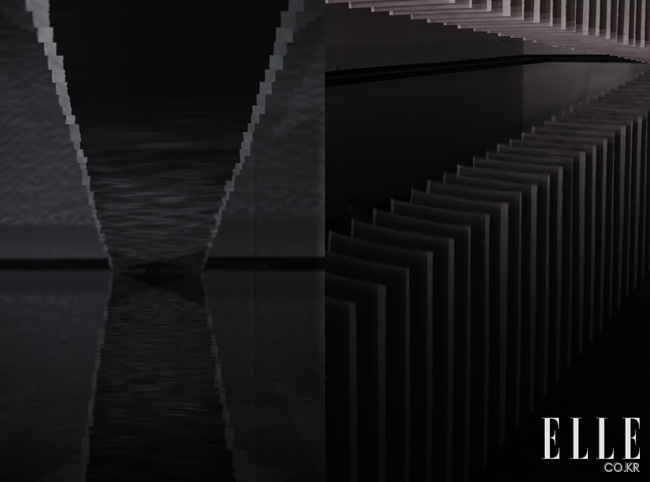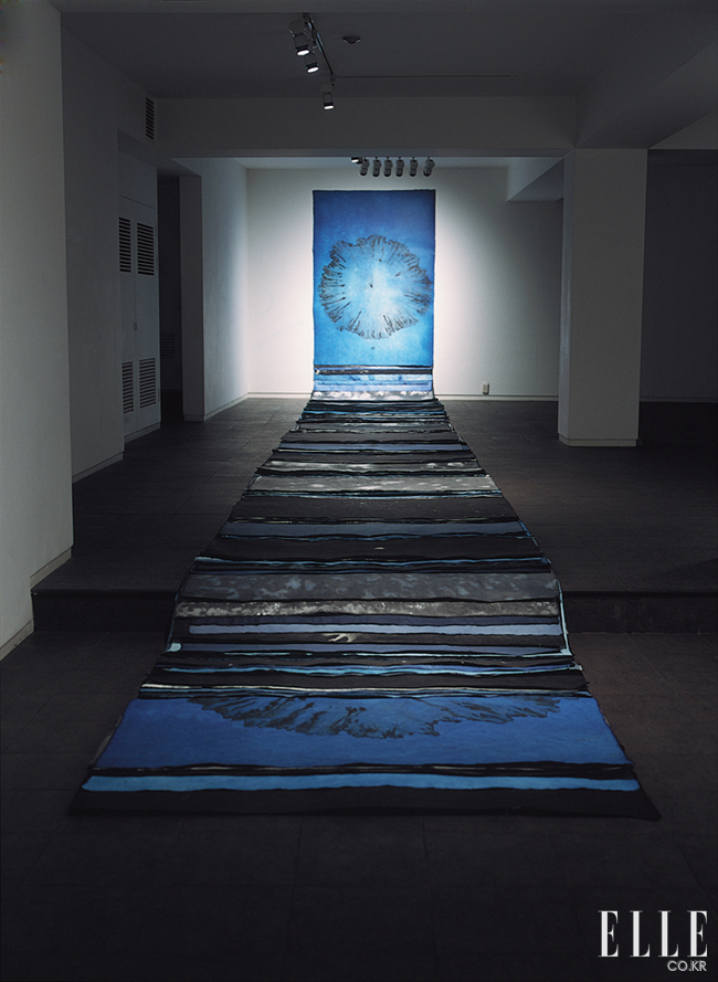 강 ‘시간이 흐르듯’ 물의 흐름을 통해 시간의 흐름을 간접적으로 표현한 강 ’시간이 흐르듯’은 파편적인 시간이 아닌 끊임없이 이어진 상태의 액체적 시간을 깨닫게 해준다. 특히 한지와 먹물을 이용해 시간의 흐름을 보여주는 김호득의 <흔들림, 문득-공간을 느끼다>는 거대한 검은 물결을 통해 시간의 영속적인 흐름에 대한 체험을 제공한다. |