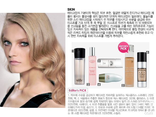 허벅지 셀룰라이트만큼이나 물놀이 갈 때 걱정되는 것은 메이크업이다. 평소처럼 메이크업했다가는 피부 위에서 전쟁나기 쉽상. 스마트한 워터프루프 메이크업이 필요한 당신에게 제안하는 서머 메이크업 노하우.