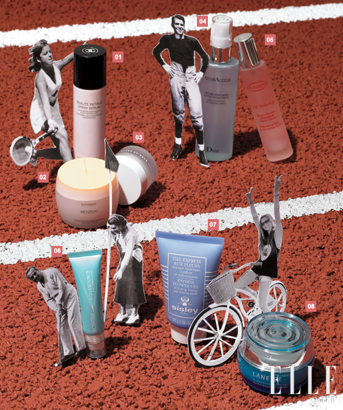 1 크리니크 썬 보디 스프레이 SPF 25 \40,000 손이 닿기 힘든 부위에 사용하기 편리한 360도 스프레이 타입, 150ml. 2 샤넬 UV 에쌍씨엘 멀티 프로텍션 SPF 50 PA+++ \62,000 파우더리한 마무리감, 30ml. 3 더바디샵 데오드라이 데오도란트 스틱 \14,000 미네랄이 겨드랑이를 보송보송하게 유지, 55g. 4 크리스챤 디올 화이트 리빌 UV 쉴드 메이크업 SPF 30 \70,000 태양을 90% 이상 반사해 투명한 피부로 케어, 10g. 5 아베다 썬 케어 프로텍티브 헤어 베일 \32,000 자외선에 의한 모발의 탈색, 건조 현상 방지, 100ml. 6 키엘 크로스 터레인 UV 스킨 프로텍터 SPF 50 \38,000 워터프루프 타입의 자외선 차단 밤, 40g. 7 크리스챤 디올 크리스탈 글로우 \36,000 워터프루프 기능의 젤리 텍스처 글로스, 6ml. 8 조르지오 아르마니 아이즈 투 킬 웨트 마스카라 \40,000 24시간 이상의 워터프루프 및 3배 이상 살아나는 볼류마이징 효과, 6ml. 9 클라란스 더블 픽스 마스카라 \28,000 울트라 파인 왁스가 속눈썹을 완벽하게 코팅, 워터프루프 기능, 7ml. 10 비오템 썬 센시티브 보디 밀크 SPF 50 \39,000 다크스팟이나 피부 트러블 예방, 선번 방지, 200ml. 11 록시땅 썬 헤어 미스트 \29,000 5가지 식물 이센셜 오일이 자외선으로부터 모발을 보호하고 강화, 100ml. 12 엘리자베스 아덴 에잇아워 크림 SPF 50 PA+++ \40,000 8시간 이상의 보습 효과, 50ml. 11 바비 브라운 브라이트닝 파우더 컴팩트 파운데이션 SPF25 \69,000 우수한 밀착력과 커버력, 13g. 12 클라란스 포어 미니마이징 세럼 \50,000 번들거림을 잡아주고 모공을 축소, 30ml.