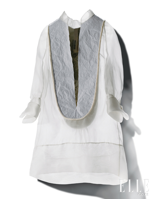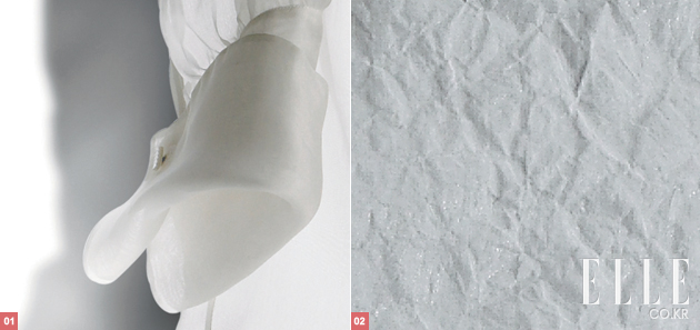여자의 일생에서 오트 쿠튀르를 입을 기회는 아무에게나 쉽사리 오지 않는다. 오트 쿠튀르로 말하자면 그 카타르시스가 파인 아트와 다름없어서 옷을 짓는 자나 입는 자 모두에게 ‘드림’이다. 그런 면에서 컨템퍼러리 오트 쿠튀리에라고 불리는 앤 발레리 해시는 여자의 로망을 실현시켜주는 ‘패션 해결사’로 불러도 좋겠다. 오트 쿠튀르 특유의 드라마틱한 디테일과 실루엣을 모던하게 정렬하고 웨어러블하게 정재해내며 숱한 소셜라이트의 절대적인 지지를 받고 있기 때문. 파리 컬렉션 주간에 발표한 레디 투 웨어 컬렉션도 이와 다르지 않아 이번 시즌 그녀는 섬세한 오간자와 풀 먹인 종이를 마구 구겨놓은 듯한 소재의 대비, 물 흐르듯 정교한 룩을 마무리한 ‘칩’한 컨버스 스니커즈 등으로 이지적이고 세련된 믹스매치의 해법을 제시했다. 특히 러프한 종이 질감이 도드라지는 오간자 블라우스는 미니멀하면서도 드레시하고, 가볍지만 진중한 앤 발레리 해시의 컨템퍼러리 쿠튀르를 상징하는 베스트 아이템이다. |
