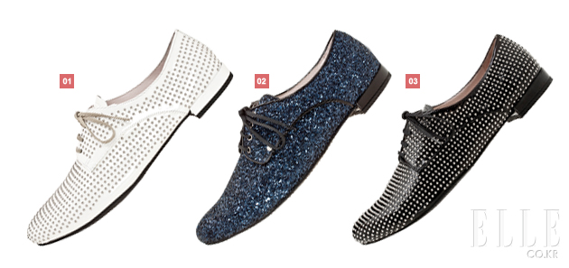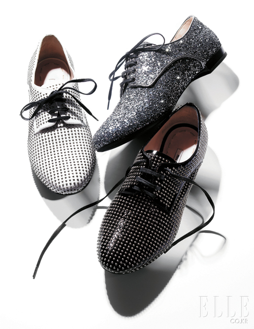 패션계에 프라다와 미우 미우만큼 완벽한 자매(?)가 또 있을까. 특히 미우 미우는 프라다의 아티스틱하고 지적인 모습을 빼닮았으면서도 때론 천방지축으로 때론 롤리타적인 요염한 무드를 선보이며 인기몰이를 하고 있다. 감성적이고 세련된 액세서리는 타이틀 아이콘. 이는 최근 캡슐 컬렉션으로 선보인 매니시 슈즈에서도 확인할 수 있다. 재즈 슈즈, 로퍼, 모카신 등 맨 슈즈에서 영감받은 클래식한 디자인을 장식한 페이턴트 레더와 메탈 스터드, 반짝이 등의 디테일은 모던하면서도 기발하고 또 유머러스하기까지 한 미우 미우만의 장난기를 그대로 담았다. 그중 맨즈 드레스 슈즈로 유명한 재즈 슈즈는 트렌디한 믹스매치 룩을 즐기는 패션 피플의 포인트 아이템으로 이보다 더 좋을 순 없을 듯. |