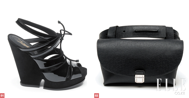 1 YSL 웨지힐 샌들 가격 미정 스웨이드·페이턴트 레더 소재, 굽 14cm. 2 루이 비통 힙색 1,400,000대 소가죽 소재, 20×11×3cm.