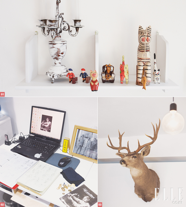 1 소년의 감성이 묻어나는 아기자기한 소품. 2 디자이너 고태용의 책상. 3 아틀리에를 이사하면서 선물 받은 인테리어 소품.