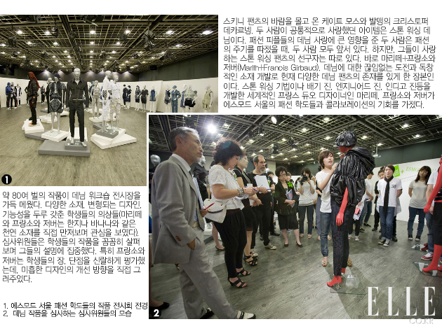 Q: 스톤 워싱을 개발하게 된 배경 A: 데님은 과거에서부터 현재까지 대중들의 사랑을 독보적으로 유지해가고 있다. 그만큼 데님 소재로 인해 환경 오염의 문제가 끊이질 않았다. 패션에 있어 나의 궁극적인 목표는 패션으로 하여금 우리의 후세에게 물려진 자연이 오염되지 않는 것. Q: 현재 또 다른 기법을 개발했다는데? A: 그렇다. 바로 WATER-FREE 워싱 기법 ‘WATTWASH’이다. 오래 전 내가 처음 개발했던 스톤 워싱은 돌과 물만 이용한 기법으로, 오염을 유발하는 화학 약품을 배제했다. 하지만, 현재는 다르다. 화학 약품을 이용한 작업으로 만들어 진 데님이 대다수다. 내가 최초로 만들었던 스톤 워싱 기법이 왜곡되어 오염을 유발한다는 사실에 죄책감을 느낀다. 때문에 또 다른 친환경 기법을 개발한 것이다. 이 기법은 레이저를 이용하여 워싱을 하므로 기존 스톤 워싱에 비해 물 사용을 97.5%까지 줄일 수 있다. Q: 데님에도 트렌드가 있다면? A: 패션에 트렌드는 존재하지 않는다. 배기(Baggy)와 스키니(skinny)라고 명명되는 단어들이 패션의 한 순간에 영향을 주는 것이다. 굳이 트렌드를 말하자면, 사람들이 자전거를 많이 탄다는 것. Q: 에스모드 서울 패션 학도들이 제작한 데님 전시를 본 소감 A: 평면적인 일러스트레이션을 본 것과 많이 달랐다. 실제로 학생들의 작품들은 정교하고 독창적이었다. 또한 자신의 작품 앞에 서서 디자인 의도와 구성에 대해 설명을 들었는데, 작품이 어떻게 변형되는가를 보여주는 모습이 흥미로웠다. 아직 2학년인 학생들이 이렇게 완성도 높은 작품을 만들었다는 사실이 나를 더욱 놀라게 만들었다. Q: 앞으로 젊은 패션 디자이너들에게 전하고 싶은 말은? A: 앞서 말했듯, 내가 생각하는 패션의 궁극적 목표를 항상 기억하길 바란다. 기능적이고 실용적인 데님 팬츠를 만드는 것에 앞서 지구의 공해를 일으키는 과정을 계속해서 줄여 나가고, 친환경을 위한 기술개발을 끊임없이 이어가야 한다. 디자이너라면 자신이 만드는 옷이 사회와 환경에 미칠 영향을 고려하며, 책임 있는 자세를 가져야 할 것이다. 또한, 패션뿐만 아니라 모든 면에서 자신의 고유한 길을 찾는 이노베이터가 되길 바란다.