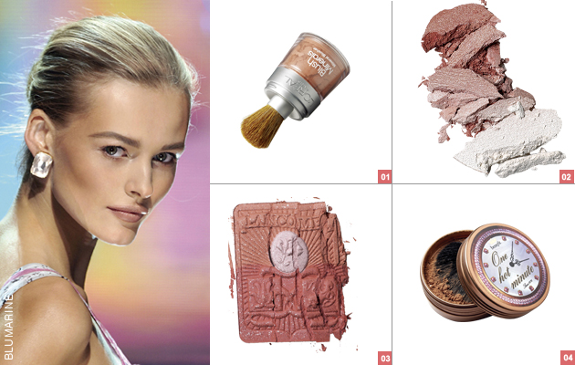 1 로레알 파리 블러쉬 미네랄 ‘소프트 피치’ 1만6천원. 2 마몽드 플로리스 그라데이션 멀티 블러셔 ‘브라운 그라데이션’ 1만5천원대. 3 랑콤 팔레트 블라종. 아이섀도와 블러셔로 사용 가능한 멀티 팔레트, 7만8천원. 4 베네피트 원 핫 미닛. 미세한 파우더 타입의 브론저, 가격 미정. | |