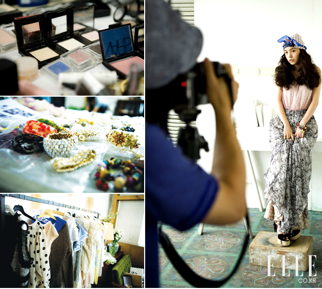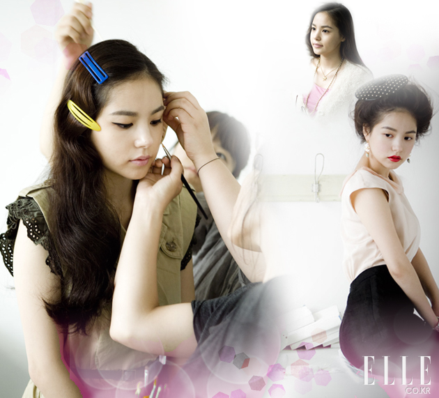 ELLE ONLINE 또 다른 매력을 보여 줄 오늘 촬영의 컨셉트? 효린 여름부터 가을까지 헤어 액세서리로 여름부터 가을까지 할 수 있는 헤어 스타일링이에요. 섹시하기도하고, 여성스럽기도 한 메이크업과 의상도 함께요.