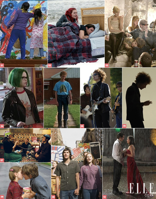 1 honey & clover “누군가가 꿈속에 나타난다는 건, 상대의 보고 싶다는 마음이 몸을 빠져나와 꿈속까지 날아오기 때문이래.” 2 eternal sunshine of the spotless mind “난 펼쳐진 책 같아. 모든 걸 너에게 말하지.” 3 factory girl “사람들은 자신의 감정이 어땠는지 곧잘 잊어버리는 것 같아요.” 4 ghost world & napoleon dynamite “내가 원하는 걸 하면 왜 안 돼?” 5,6 i'm not there “네 시대를 살고 네 노래를 부르렴.” 7 the science of sleep “자연스러움을 얻는 것은 힘들어. 잠시 한눈을 팔았다간 금세 질서가 개입하지.” 8 across the universe “물론이죠. 우리가 왜 하느냐가 아니라 어떻게 하느냐가 중요한 거죠.” 9,10 love me if you dare “너랑 못 해본 게 있어… 개미 먹기, 백수 약 올리기, 미친 듯이 사랑하기.”
