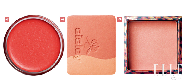 7 pale Skin 바비 브라운 팟 루즈, 칼립소 코럴. 3만8천원.이름은 ‘코럴’이지만 크림 타입이라 보는 그대로 생생한 오렌지 컬러로 발색되는 것이 특징. 한 번에 진하게 바르기보단 엷게 펴발라가며 컬러를 조절할 것. 8 yellow Skin 시슬리 휘또 블러쉬 에끌라, 3호 듀오 망고. 8만원. 밝은 귤색 컬러를 뺨 부위에 넓게 펴바른 다음 오렌지 컬러를 중앙에 덧바르면 얼굴이 입체적으로 보이는 효과가 있어 일석이조. 사랑스러운 오렌지 컬러다. 9 dark Skin 베네피트 코랄리스타. 4만2천원. 뷰티 동호회의 절대적인 지지를 얻는 ‘박스-오’ 시리즈인 만큼 발색이나 광택, 어느 것 하나 빠지지 않는다. 흰 피부는 청순하게, 까무잡잡한 피부는 섹시하게 마무리한다. |